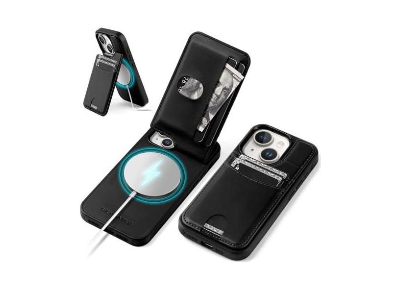 SkyEagle Capa carteira compatível com Magsafe para iPhone 15 Plus com suporte para cartão de suporte, bloqueio RFID, compartimentos para cartão de crédito, couro PU, homens e mulheres, capa de