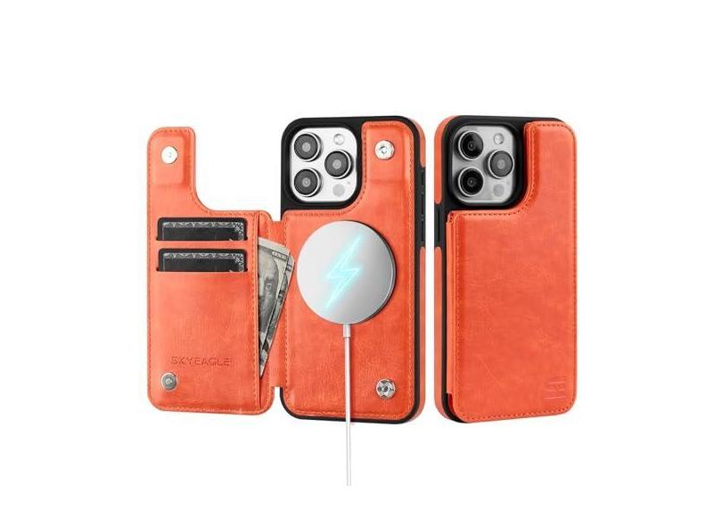 SkyEagle Capa carteira para iPhone 14 Pro Max 【Compatível com Magsafe】 Capa protetora flip de couro PU feminino masculino com compartimentos para cartão de crédito com suporte de bloqueio RFID, para