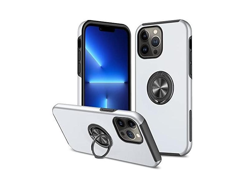 SORAKA Capa para iPhone 14 Pro com suporte de anel invisível e placa de metal para montagem magnética em carro Capa rígida para PC Capa iPhone 14 Pro Capa resistente de nível militar