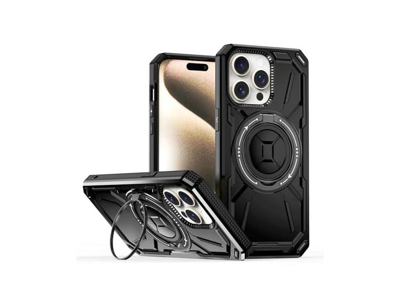 SORAKA Capa para iPhone 15 Pro Max com suporte para anel,compatível com MagSafe Capa iPhone 15 Pro Max com placa de metal para suporte magnético para carro Capa resistente que absorve choques