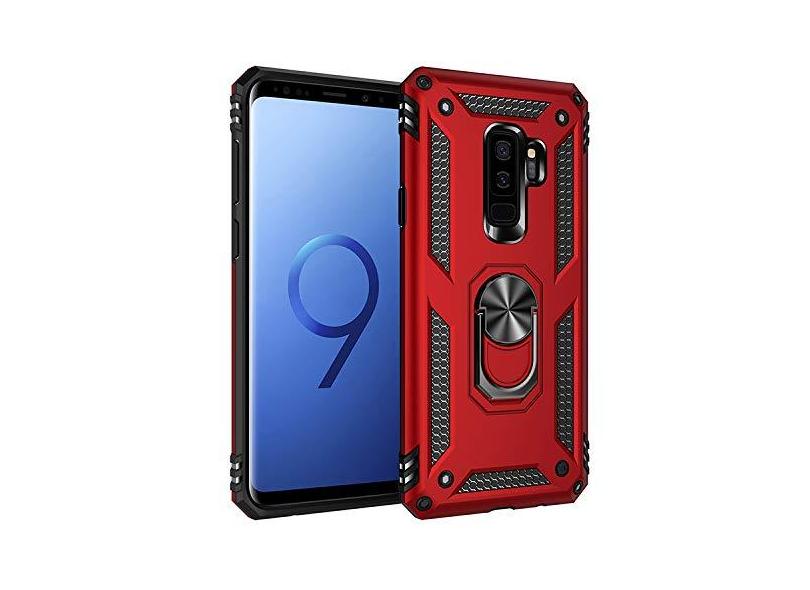 SORAKA Capa para Samsung Galaxy S9 Plus com suporte de anel capa protetora para Samsung Galaxy S9 Plus capa traseira de policarbonato rígido com placa de metal para suporte magnético de telefone carro