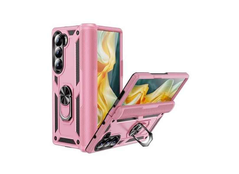 SORAKA Capa para Samsung Galaxy Z Fold6 com suporte de anel capa protetora para Samsung Galaxy Z Fold6 capa traseira de policarbonato rígido com placa de metal para suporte magnético de telefone carro