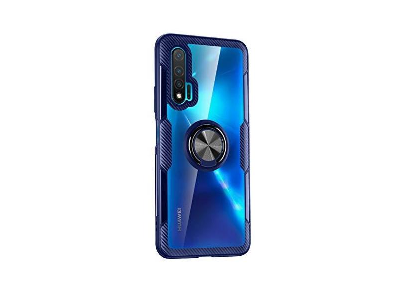 SORAKA Capa transparente para Huawei Nova 5T com suporte para anel,capa de PC rígida transparente Capa Huawei Nova 5T com placa de metal para suporte magnético de telefone para carro