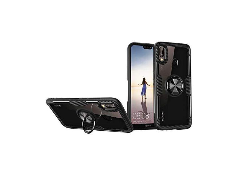 SORAKA Capa transparente para Huawei P20 Lite com suporte para anel,capa de PC rígida transparente Capa Huawei P20 Lite com placa de metal para suporte magnético de telefone para carro