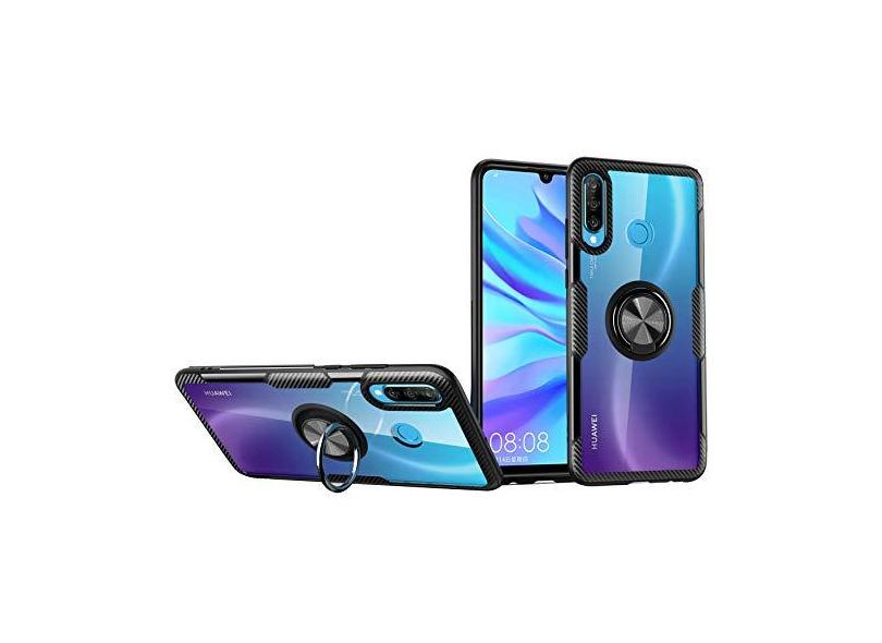 SORAKA Capa transparente para Huawei P30 Lite com suporte para anel,capa de PC rígida transparente Capa Huawei P30 Lite com placa de metal para suporte magnético de telefone para carro