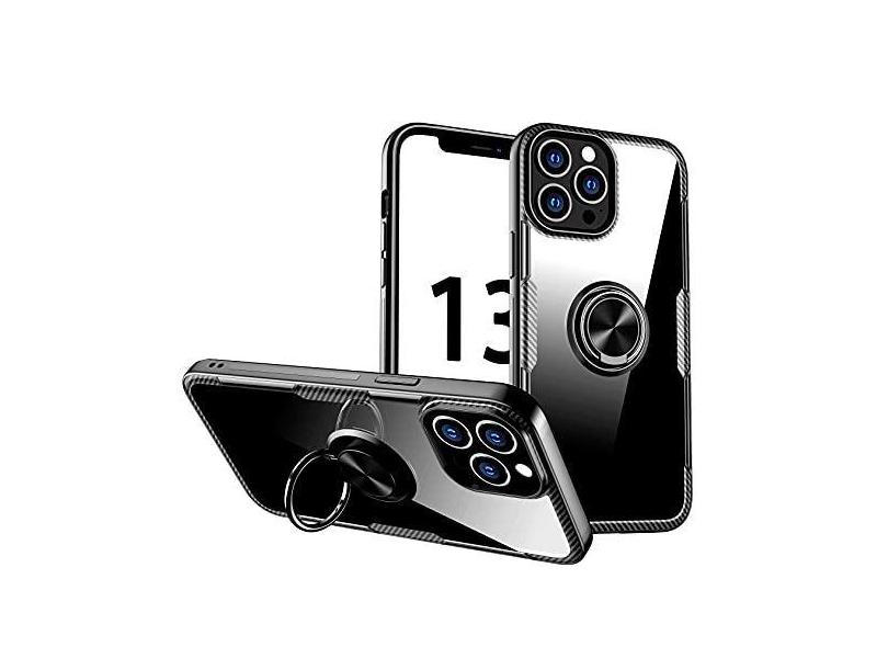 SORAKA Capa transparente para iPhone 13 Pro Max com suporte para anel,capa de PC rígida transparente Capa iPhone 13 Pro Max com placa de metal para suporte magnético de telefone para carro