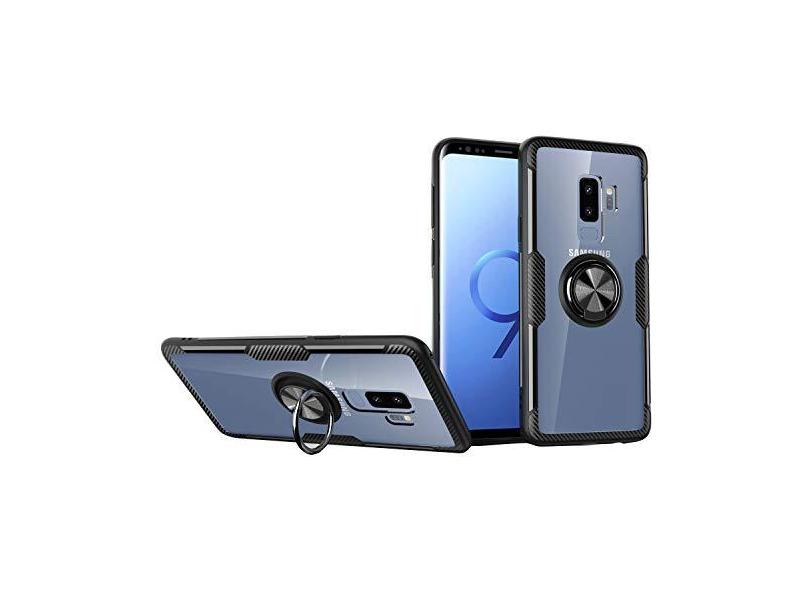 SORAKA Capa transparente para Samsung Galaxy S9 Plus com suporte para anel,capa de PC rígida transparente Capa Samsung Galaxy S9 Plus com placa de metal para suporte magnético de telefone para carro