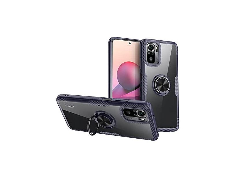 SORAKA Capa transparente para Xiaomi Redmi Note 10S com suporte para anel,capa de PC rígida transparente Capa Redmi Note 10S com placa de metal para suporte magnético de telefone para carro