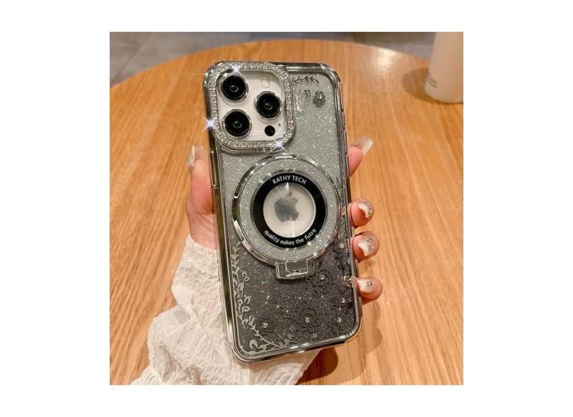 Suporte caso luxo flor glitter diamante para iphone 14 11 12 15 13 pro max 14 15plus caso capa à prova de choque, prata, para iphone 15