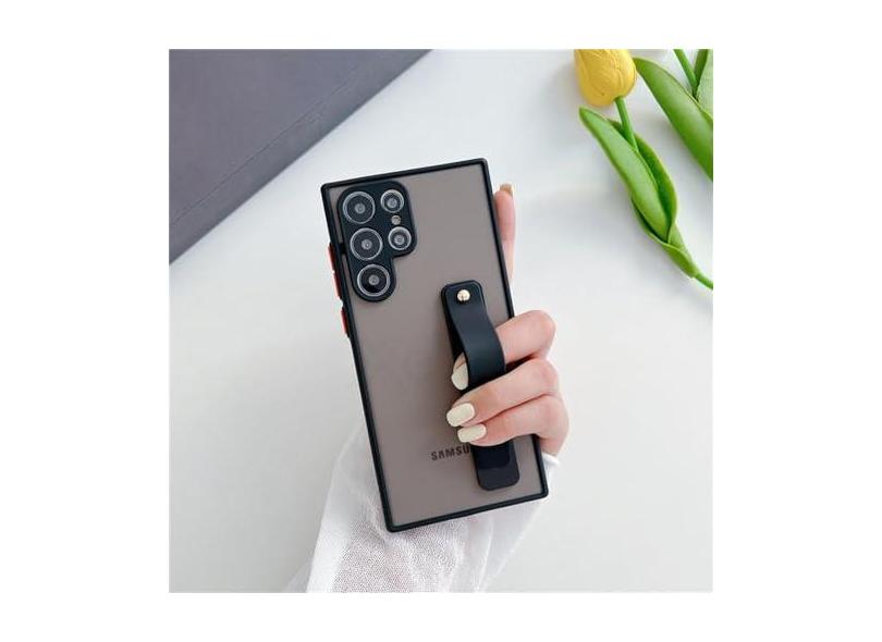Suporte de alça de pulso capa de telefone translúcida para Samsung S24 S23 Ultra S22 S20 S21 Plus FE Note 20 A72 A52 A33 A13 A32 A21S Capa, preta, para A52