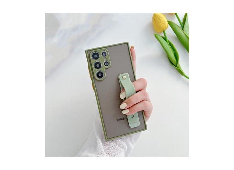 Suporte de alça de pulso Capa de telefone translúcida para Samsung S24 S23 Ultra S22 S20 S21 Plus FE Note 20 A72 A52 A33 A13 A32 A21S Capa, Verde Exército, Para A33 5G