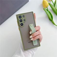 Suporte de alça de pulso Capa de telefone translúcida para Samsung S24 S23 Ultra S22 S20 S21 Plus FE Note 20 A72 A52 A33 A13 A32 A21S Capa, Verde Exército, Para A71 4G