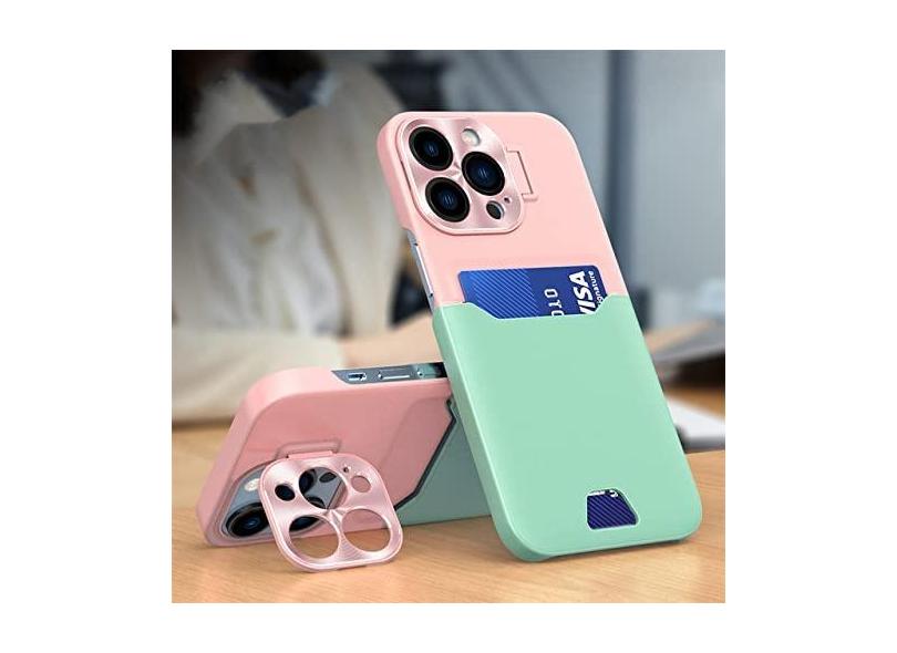 Suporte de cartão de couro de luxo, suporte invisível, capa de telefone para iPhone 14 13 12 Pro Max Mini capa protetora de lente de metal, rosa, verde menta, para iPhone 12 Pro