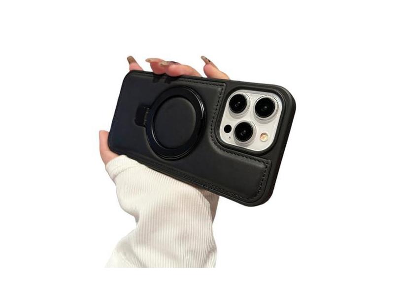Suporte de couro capa de telefone para iphone 15 14 pro max suporte de anel magnético capa à prova de choque para iphone 15 14 plus, preto, para iphone 15