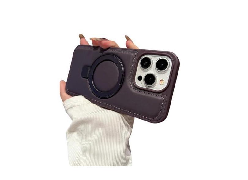 Suporte de couro capa de telefone para iphone 15 14 pro max suporte de anel magnético capa à prova de choque para iphone 15 14 plus, roxo, para iphone 14 promax