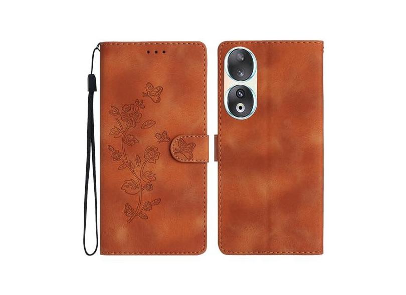 SUPWALL Capa flip compatível com Huawei Honor 90 | Capa carteira de couro PU premium borboleta flor em relevo | [Suporte] [Ranhuras para cartão] [Alça de pulso] Capa de telefone à prova de choque |