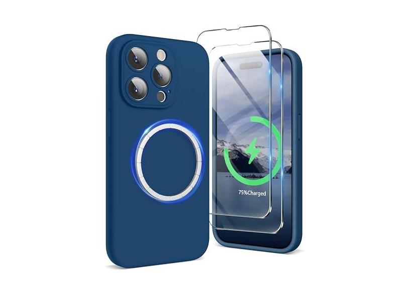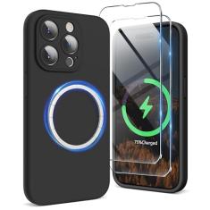 SURPHY Capa projetada para iPhone 15 Pro compatível com MagSafe (6,1 polegadas 2023), com 2 protetores de tela, capa de telefone de silicone líquido (proteção para câmera + forro de microfibra macio),