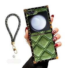 TSAYGFK Capa para Samsung Galaxy Z Flip 5, Capa Z Flip 5 5G para mulheres, Edge Case Cute Luxury Elegant Designer Soft Velour Capa à prova de choque com alça de pulso para Galaxy Z Flip 5 6,7