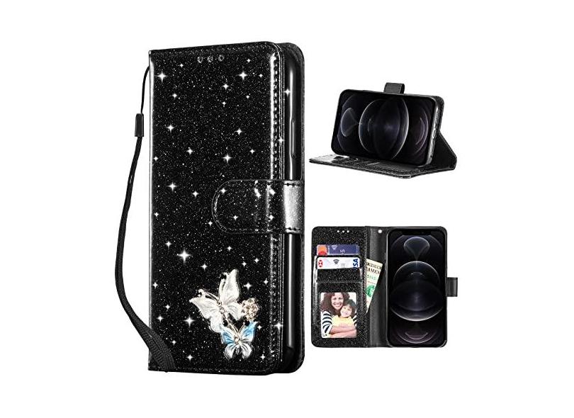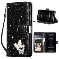 UEEBAI Capa carteira para iPhone 14 Pro Max de 6,7 polegadas, capa de telefone premium de couro PU com glitter com compartimentos para cartões, capa com fecho magnético, capa para bolsa de mão à prova