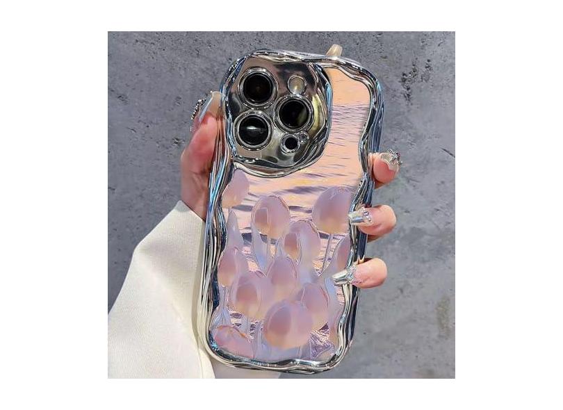 UEEBAI Capa com moldura ondulada para iPhone 13 Pro Max 6,7 polegadas, linda borboleta floral brilhante capa de proteção amortecedora de TPU macio banhado de luxo capa bonita brilhante padrão banhado