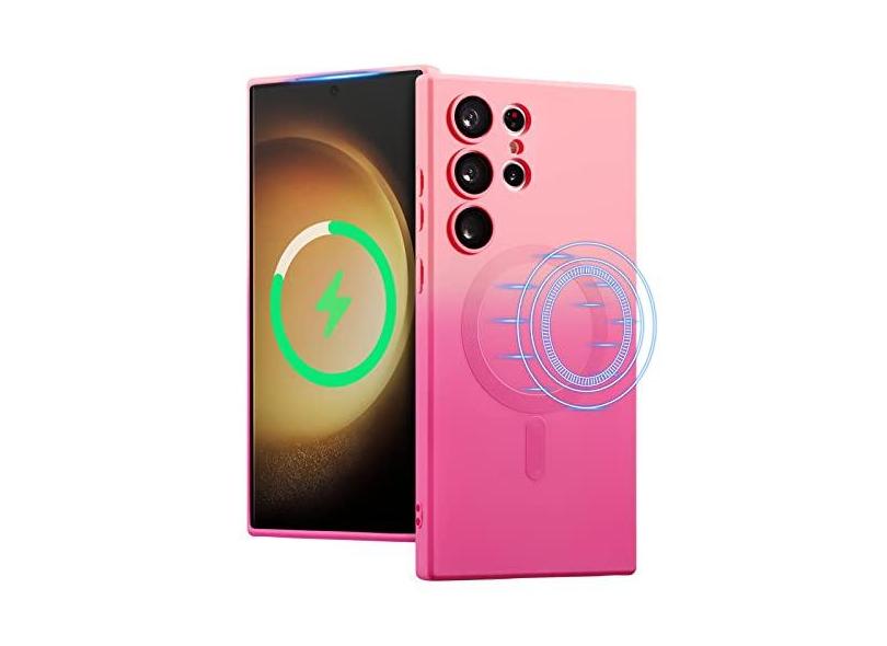 UEEBAI Capa magnética para Samsung Galaxy S23 5G, capa de cor neon gradiente de luxo compatível com MagSafe capa de carregador com protetor de lente de câmera bonita capa de telefone para mulheres e