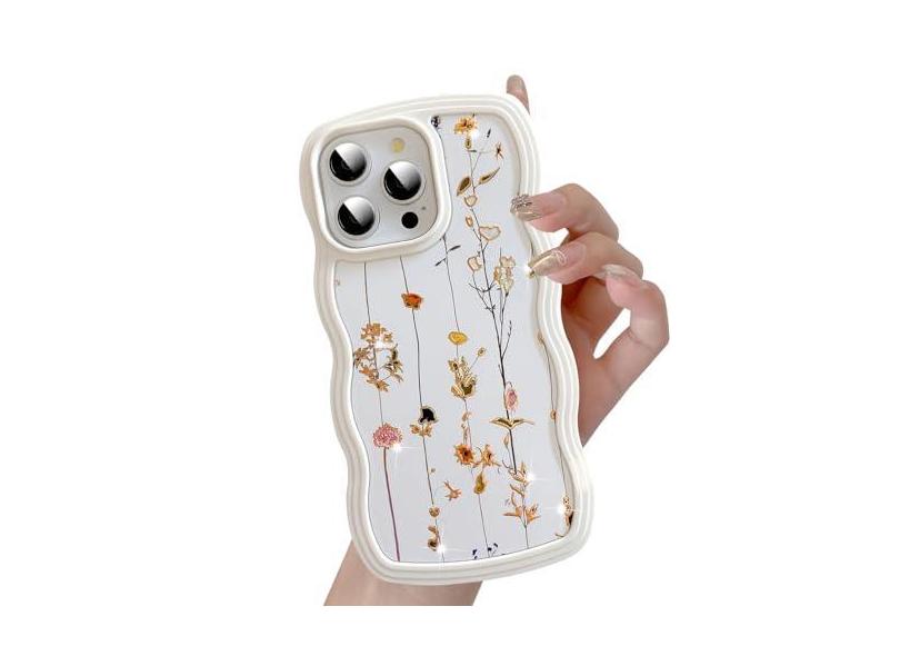 UEEBAI Capa para iPhone 13 Pro Max de 6,7 polegadas floral, linda ondulada encaracolada com estampa de flor brilhante estética, capa protetora de policarbonato rígido + TPU fino à prova de choque para