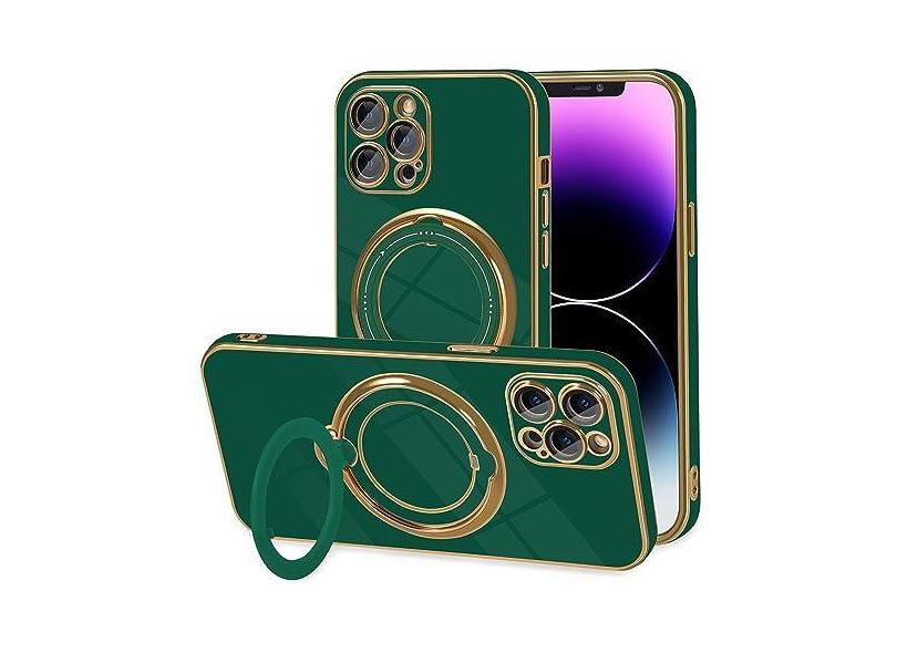 Uioeua Capa com suporte magnético compatível com iPhone 12 Pro Max, capa MagSafe com suporte de revestimento de luxo com protetor de lente de câmera completo para iPhone 12 Pro Max, mulheres, meninas,