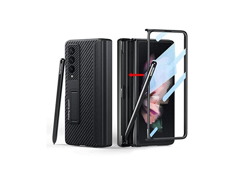 [Versão atualizada] Capa Libeagle compatível com Samsung Galaxy Z Fold 3 [Suporte embutido para caneta S Pen para evitar perda de caneta][Couro na parte de trás] [Protetor de tela] [Proteção de