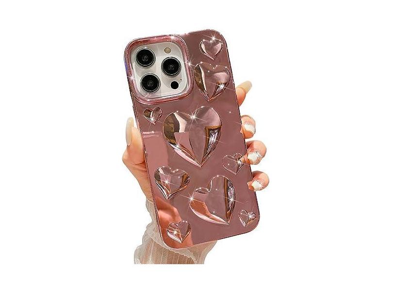 VirgoCCY Capa para iPhone 13 Pro Max, Luxuosamente banhado 3D Love Heart, lindo brilho amor corações capa para iPhone 13 Pro Max, capa protetora transparente macia à prova de choque para mulheres