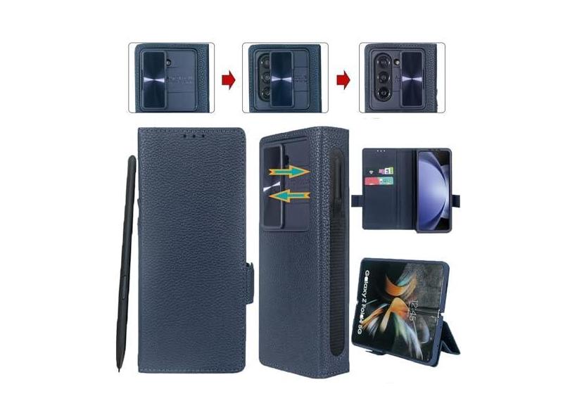 Vitodo Capa para Galaxy Z Fold 6 com suporte para caneta S, capa carteira de couro genuíno embutida para câmera, compartimento para cartão, suporte, capa de telefone com proteção de dobradiça para