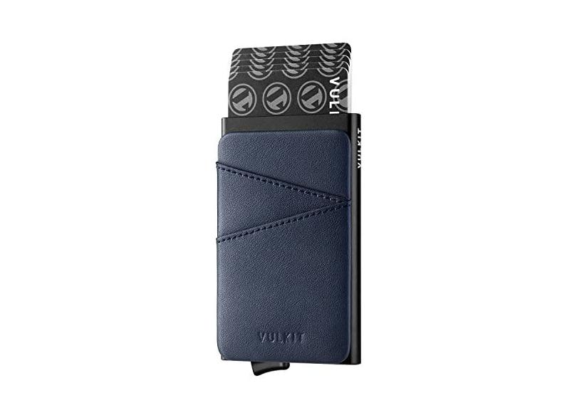 VULKIT Carteira masculina com porta-cartões de metal com camada de bloqueio de RFID, carteira de alumínio minimalista fina com suporte para cartão de visita de acesso rápido a cartões de visita,