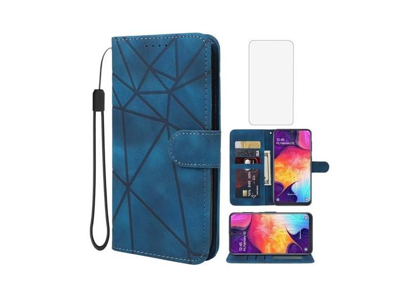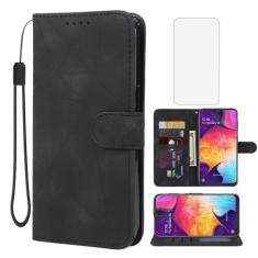 Wanyuexes Capa carteira para Galaxy A50/Galaxy A30S/Samsung A50S A505U com protetor de tela de vidro temperado, pele sensação de pele flip suporte suporte para cartão de crédito capa para celular para