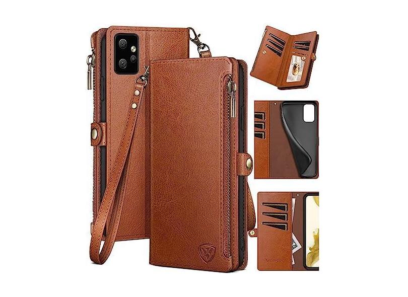 XcaseBar Capa carteira para Moto G Power 2023 5G com zíper para cartão de crédito 【bloqueio RFID】, capa flip folio de couro PU à prova de choque feminina masculina para Power2023 capa café leve