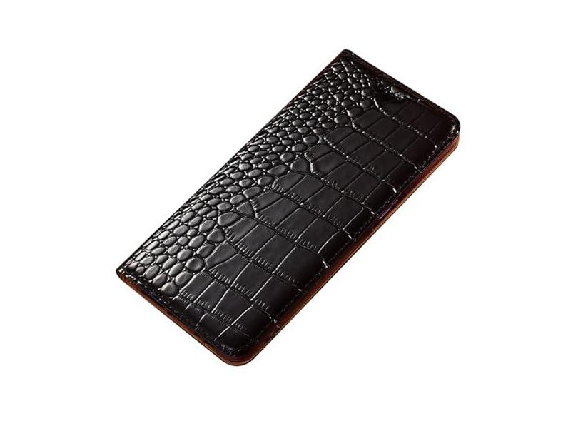 YEXIONGYAN Capa carteira para Samsung Galaxy S24 Ultra/S24 Plus/S24 Capa de couro bovino feita à mão com estampa de crocodilo luxuosa à prova de choque com proteção total (S24 Ultra, preta)