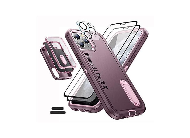 ymxdmd A capa é especialmente projetada para iPhone 11 Pro de 5,8 polegadas, proteção total resistente, absorção de choque, suporte integrado de borracha de silicone 3 em 1 com 2 películas temperadas
