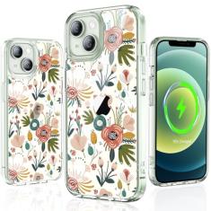 YNSZAS Capa para iPhone 12, compatível com MagSafe, capa de telefone fofa com flores coloridas exclusivas, policarbonato rígido + TPU à prova de choque, capa protetora floral retrô feminina para Apple