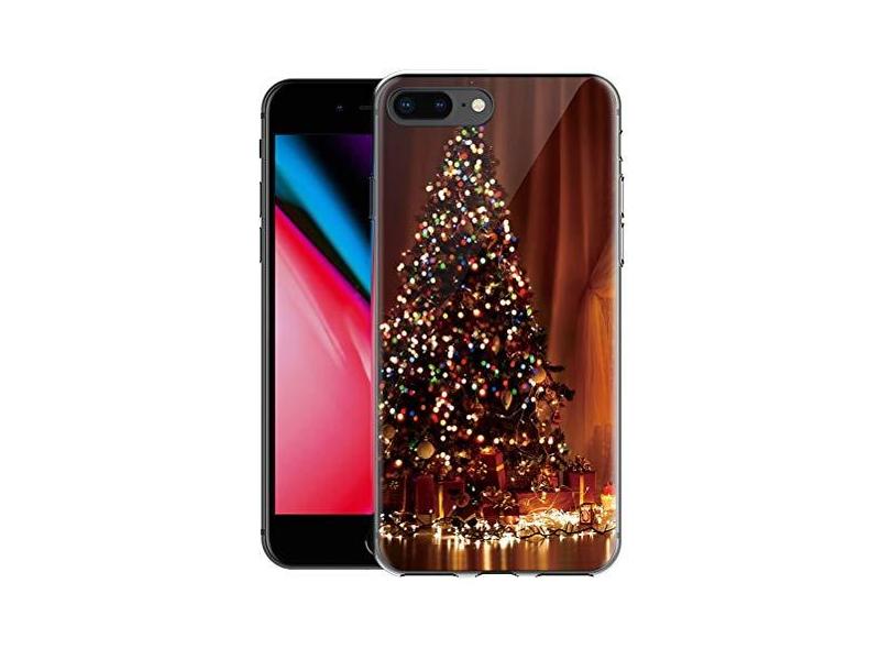 Yoedge Capa de Natal para iPhone 7 Plus/8 Plus, transparente, fina, de TPU com design de Natal para meninas e mulheres, linda decoração de Natal, capa traseira protetora transparente para 7 Plus/8 Plus, árvore de Natal