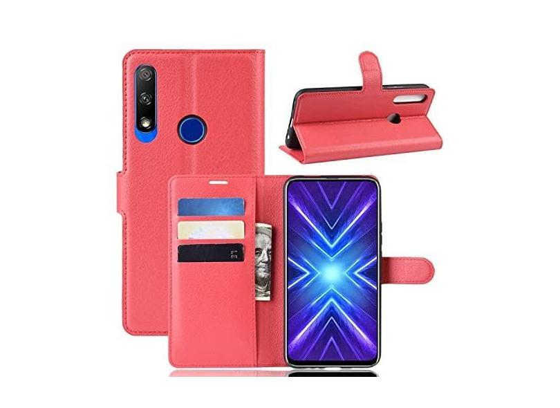 YUNCHAO Caixa de telefone Para Huawei Honor 9x Versão de impressão digital Litchi Texture Flip Leather Case com carteira e suporte e slots de cartão capa para celular