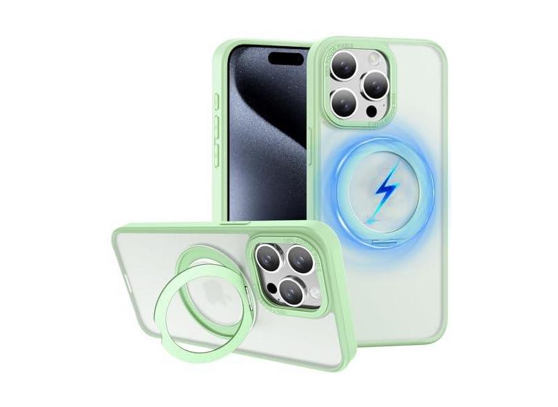 ZHK Anel rotativo de 360° para iPhone 15 Pro capa magnética, [à prova de quedas de grau militar] [painel traseiro fosco translúcido] Capa de telefone fina antiderrapante fosca para iPhone 15 Pro de