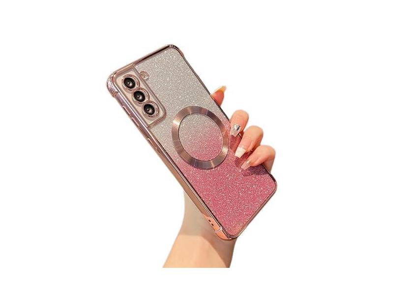 ZTOFERA Capa magnética transparente para Samsung Galaxy S21 Plus 5G com brilho gradiente Peice (2 em 1), capa protetora de TPU à prova de choque com revestimento luxuoso para mulheres e meninas - ouro
