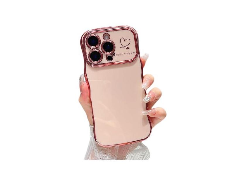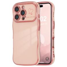 ZTOFERA Capa para celular 16 Pro Max de 6,9 polegadas, linda capa ondulada encaracolada com estampa de coração de amor, borda banhada de luxo, proteção total para câmera, à prova de choque, capa de