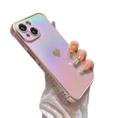 ZTOFERA Capa para iPhone 14 de 6,1 polegadas, linda capa colorida com borda de revestimento iridescente com padrão de corações de amor, proteção de lente de câmera à prova de choque para mulheres e