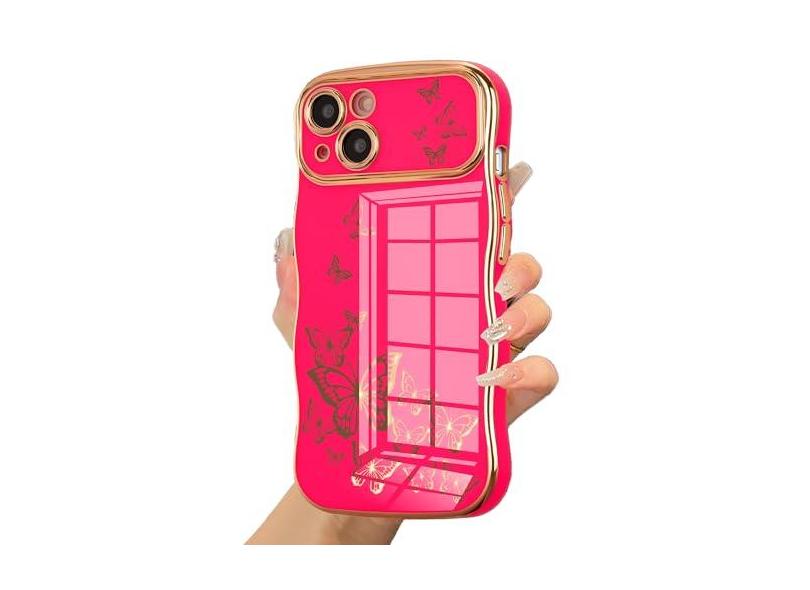 ZTOFERA Capa para iPhone 15 Plus para meninas e mulheres, linda moldura ondulada encaracolada com padrão de borboleta banhada de luxo, capa de proteção de lente levantada de TPU macio à prova de