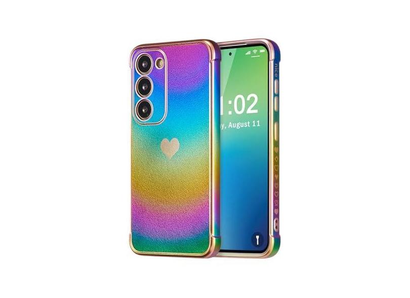 ZTOFERA Capa para Samsung Galaxy S23 Plus de 6,6 polegadas, linda capa colorida com borda de revestimento iridescente com padrão de corações de amor, proteção de lente de câmera à prova de choque para