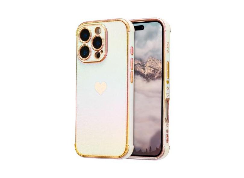 O menor preço encontrado no Brasil para ZTOFERA Capa para telefone C de 6,3 polegadas, linda capa colorida com borda de revestimento iridescente com padrão de corações de amor, proteção de lente de câmera à prova de choque para mulheres e atualmente é R$ 107,15.