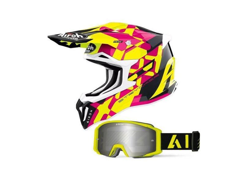 Capacete Airoh Strycker XXX Rosa + Óculos Airoh Blast XR1 Amarelo, Ro