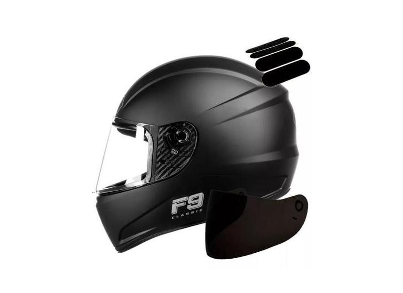 Capacete Fly F9 Classic Preto Fosco E Kit Adesivo Viseira, Preto Fosco