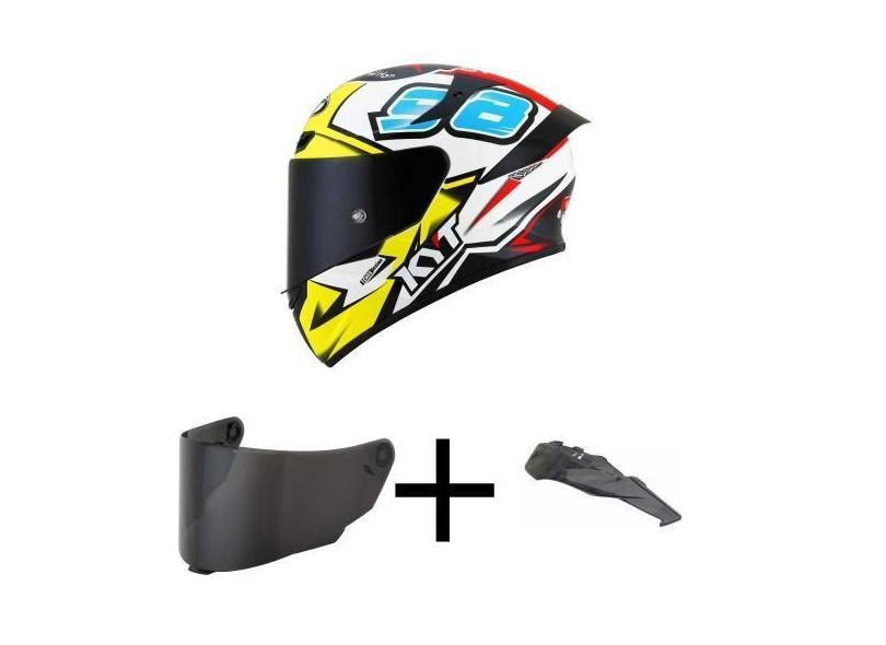 Capacete KYT TT Course 98 Bomb Branco Mais Viseira Fumê e Spoiler Fumê