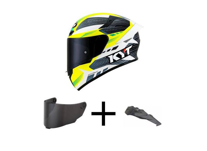 Capacete KYT TT Course Gear Preto e Amarelo Mais Viseira Fumê e Spoile