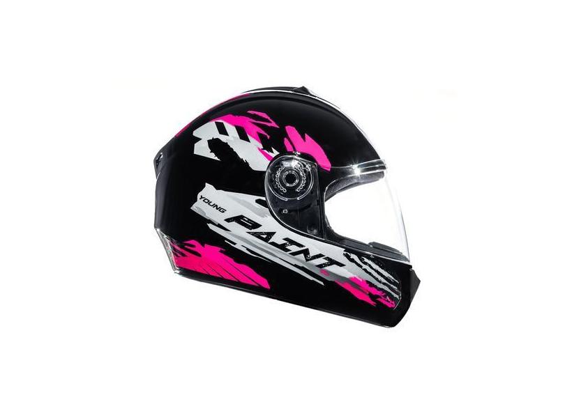 Capacete Moto Infantil Criança Fly Young Paint, Preto Brilhante Rosa,